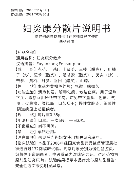 婦炎康分散片