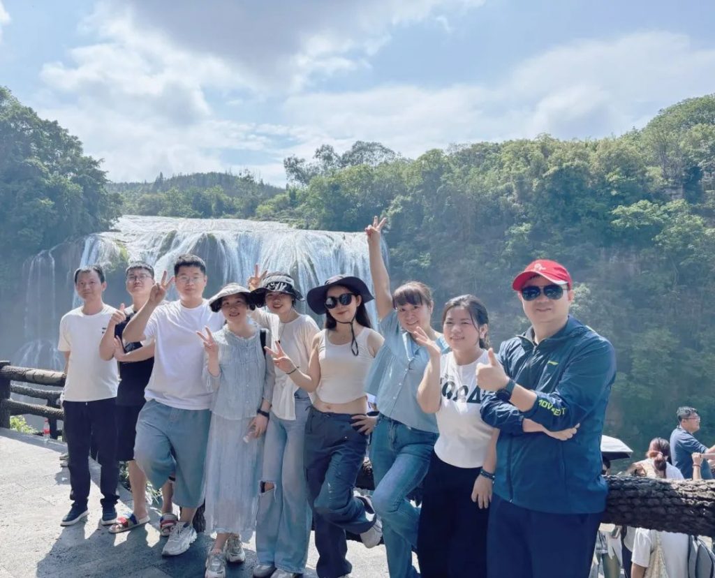 最后一天,我們的足跡留在了壯觀的黃果樹瀑布前,作為亞洲最大的瀑布,其景觀震撼人心,小學(xué)課本里對黃果樹瀑布的描述,讓每個(gè)人心中都住著一個(gè)黃果樹瀑布。黃果樹下,壯觀秀麗;水簾洞旁,水聲轟鳴,仿佛是大自然對我們團(tuán)隊(duì)精神的最高贊歌。那一刻,每個(gè)人的心都被這份雄渾壯麗所觸動,更加堅(jiān)定了我們作為團(tuán)隊(duì)一員,面對工作挑戰(zhàn)也要勇往直前的決心。