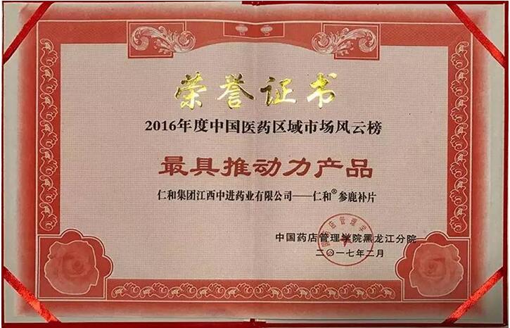 2、2016年中國(guó)醫(yī)藥區(qū)域市場(chǎng)系列產(chǎn)品榜單公布,參鹿補(bǔ)片再獲殊榮