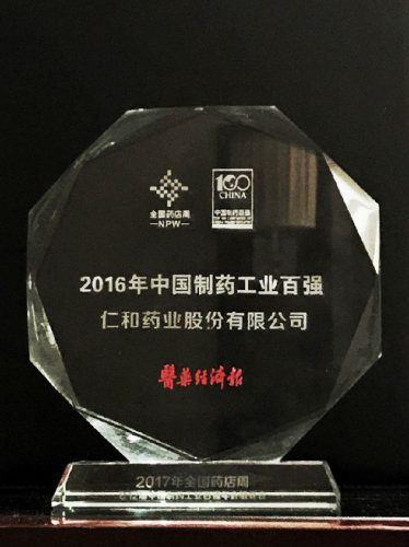 同時,由中國醫(yī)藥經(jīng)濟報主辦的“2016年度中國制藥工業(yè)百強”榜單進行了發(fā)布,仁和藥業(yè)股份有限公司獲此殊榮。