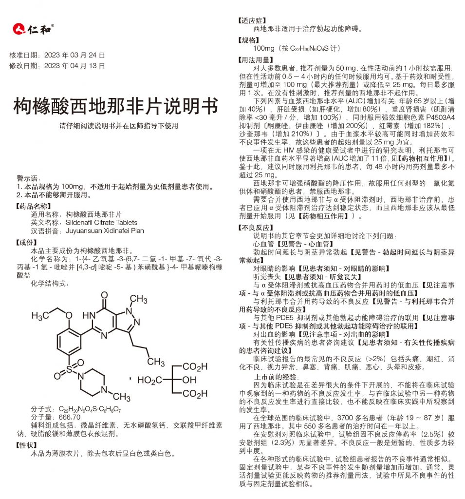 枸櫞酸西地那非片(100mg/片 *1片/板*1板/盒)