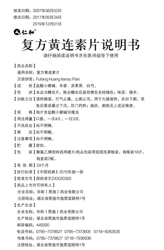 復方黃連素片