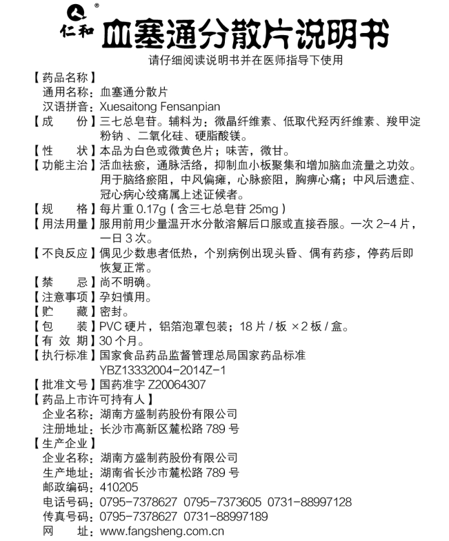國藥準字Z20064307
